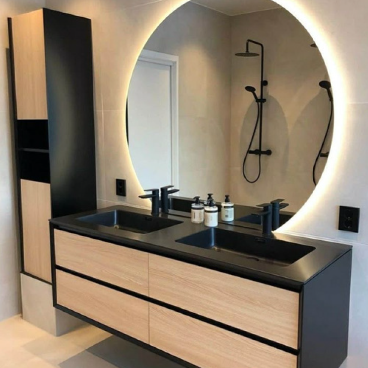 Mobiliario a medida que aprovecha cada centímetro con elegancia. Explore nuestra selección de acabados resistentes a la humedad y diseños sofisticados.